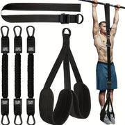 EASY TO CARRY: Easy to use, put the webbing on the bar, then secure the webbing with the steel buckle, add resistance bands, add foot/knee support pads. With a storage bag, easy to carry, suitable for home, gym, outdoor, office, travel, etc.