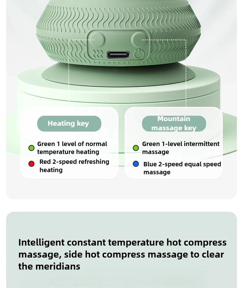 Dual Functionality: Features heat and vibration settings with adjustables levels. Type-C charging for easy use and maintenance.